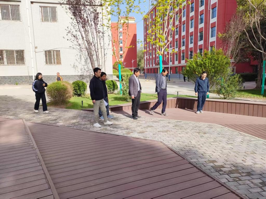 在男生公寓周边部分场地提升改造项目现场,验收小组成员对项目边界护坡修建、路面硬化、绿化带修缮、照明设施增设等进行逐一检查,并对项目部分细节问题提出宝贵意见。在钻探实训室基础设施改造现场,验收组重点检查了主体结构、水电线路、通风系统、防滑地面、消防设施及设备安装情况。